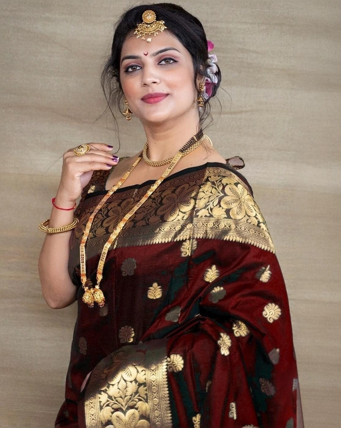 - Color Details :: Saree : Maroon|| Blouse : Maroon