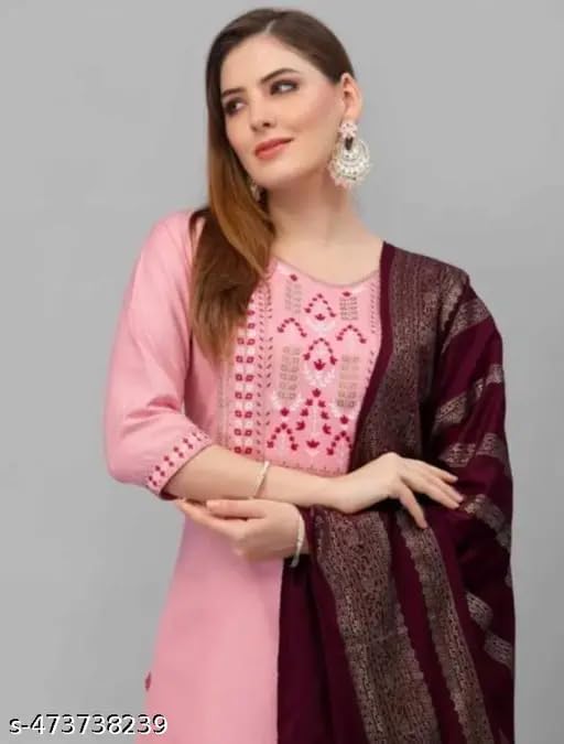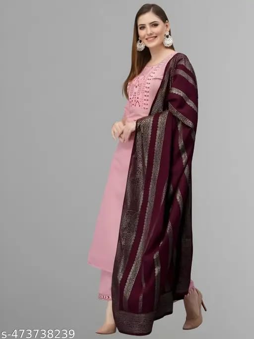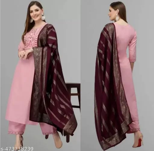 - Complete 3-Piece Set – Includes a 3/4 sleeve stitched kurta, matching pants, and a lightweight dupatta.