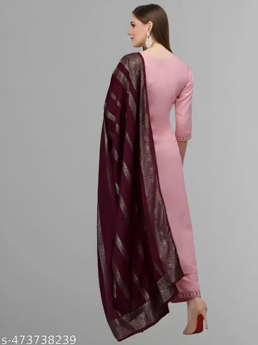 - Solid Pattern – Classic foil pink color with a clean, minimalist design for a refined ethnic look.